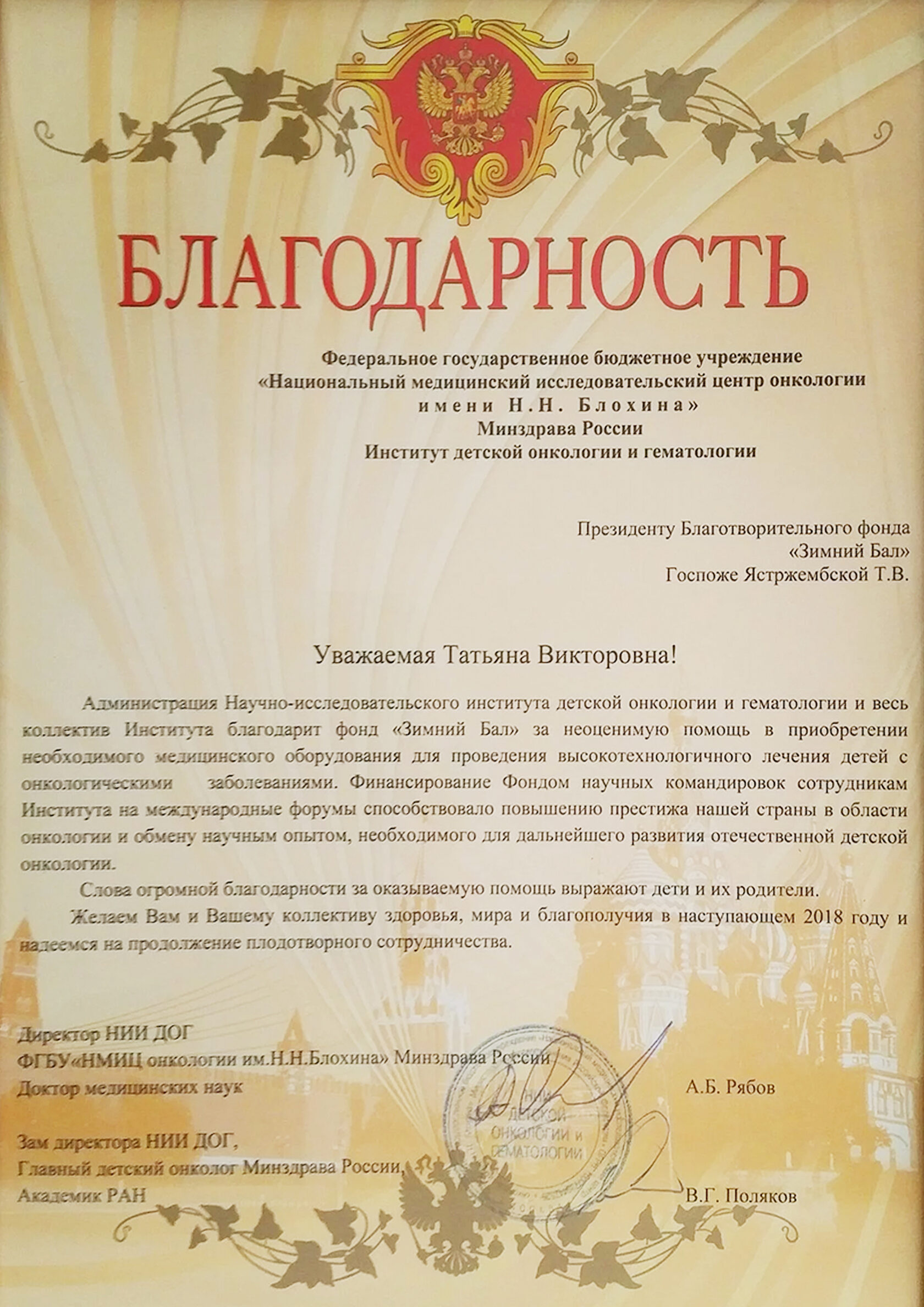Благодарственные письма